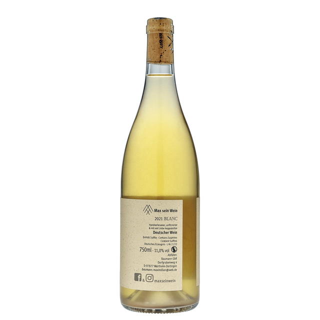 Max sein Wein - Blanc 2021 - Cuvée Müller-Thurgau, Silvaner, Bacchus - trocken - Deutscher Wein - 0,75l - 11,0% alc. - 18,75€ [ 25,00€/l ]
