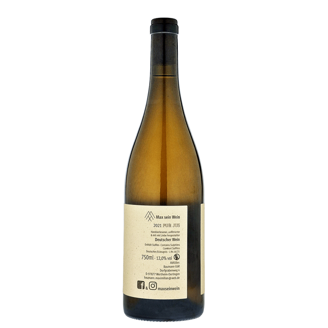 Max sein Wein - Pur Jus 2021 - Gewürztraminer, Kerner, Müller-Thurgau - trocken - Deutscher Wein - 0,75l - 12,0% alc. - 22,65€ [ 30,20€/l ]