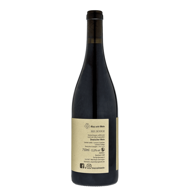 Max sein Wein - Rouge 2021 - Pinot Meunier & P. Noir - trocken - Deutscher Wein - 0,75l - 12,0% alc. - 22,65€ [ 30,20€/l ]