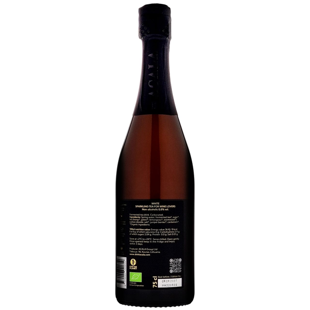Sparkling Tea Weiß - trocken & alkoholfrei - 0,0% alc.- Fermentierter Tee mit Kohlensäure - ACALA-Bio Drinks - 0,75l - 15,90 € [ 21,20€/l ]
