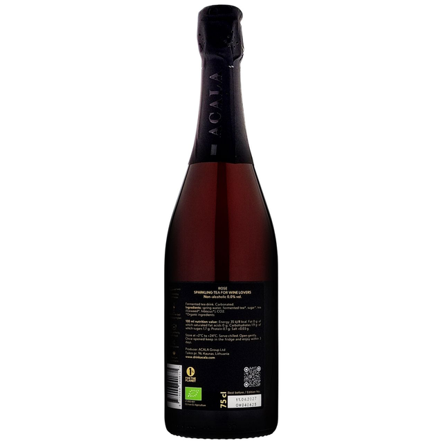 Sparkling Tee Rosé - sehr trocken & alkoholfrei - 0,0% alc.- Fermentierter Tee mit Kohlensäure - ACALA-Bio Drinks - 0,75l - 15,90 € [ 21,20€/l ]